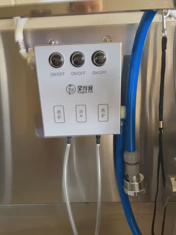 This fresh water bathing system is gravity fed. No power required automatically feeds product into a line with Vowels that determine how much product is allowed into the line at time